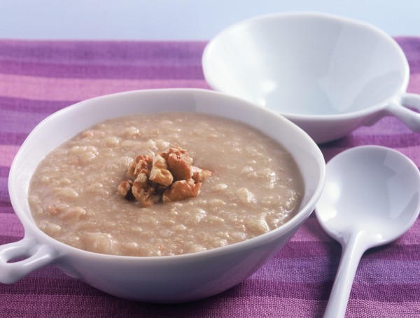 캘리포니아 호두 60g, 불린 쌀 200ml, 물 1.2L, 소금 2 작은 술, 설탕 1 큰 술 <토핑>구운 호두 약간
